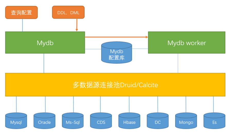 数据库统一查询(MyDB)是面向DBA和普通用户管理及查询数据库的在线数据库运维管理平台:普通用户登录MyDB执行数据源查询、数据字典浏览等操作;DBA通过MyDB管理MySQL、Oracle、MS-SQL、CDS、Hbase等数据库,对普通用户赋权、执行DDL变更、DML订正、脱敏字段设置等操作。
